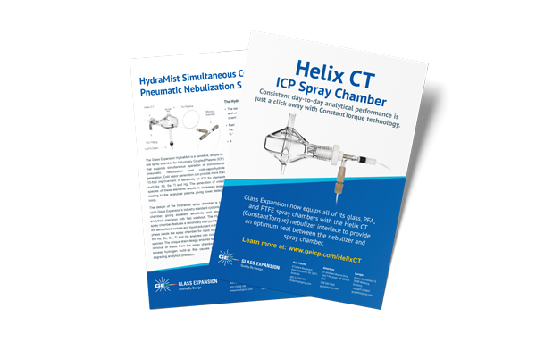 Glass Expansion manufactures Accessories and Consumables for ICP-OES and ICP-MS Sample Introduction Systems. Below you can view flyers for a range of our high-quality products.